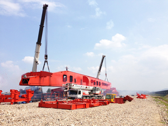 公司主要設備有:SLJ900T流動式運架一體機、SXJ900T/32M分體式架橋機及運梁車、MG450T提梁機(跨度有35M~40M,起升凈高20~40M)、ME900T提梁機、SXJ550T/32M一跨式架橋機及運梁車、SGTJ180T鋪架機等高鐵運架設備。