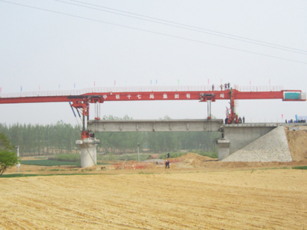 以及生產(chǎn)更新運架產(chǎn)品能架設跨度40M高速鐵路箱梁的:SXJ1000T/40M一跨式架橋機(配套攀爬式運梁車可以實現(xiàn)過隧道零距離架梁)和攀爬式運梁車。并能對現(xiàn)有32M分體式運架設備進行改造,改造后能實現(xiàn)高低位架設跨度40M高速鐵路箱梁(高位改造不能過隧道,把原架橋機改造一跨式,把原運梁車增加2軸。低位改造能過隧道架梁,把原架橋機改造一跨式低位,把原運梁車改成攀爬式運梁車并增加二臺喂梁臺車實現(xiàn)過隧道架梁)。